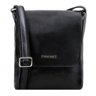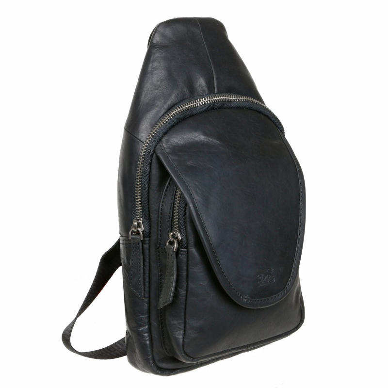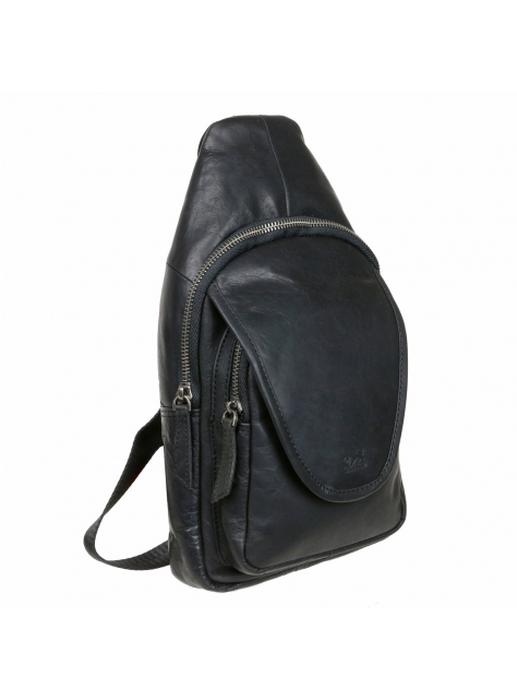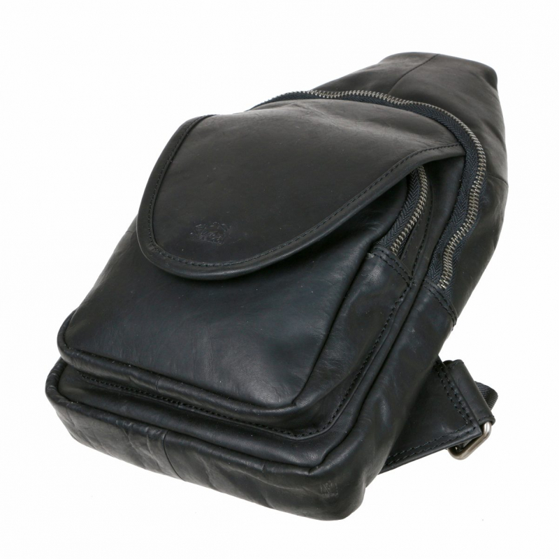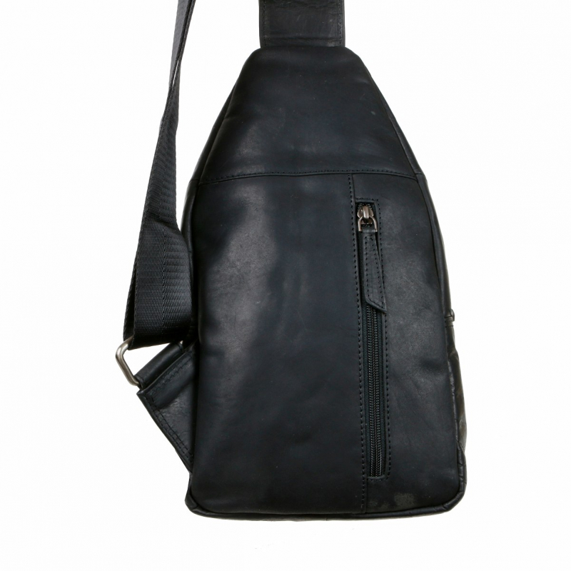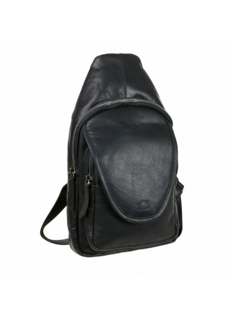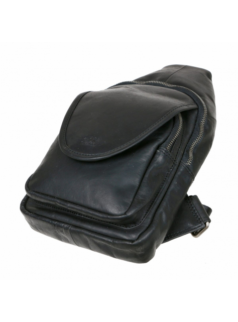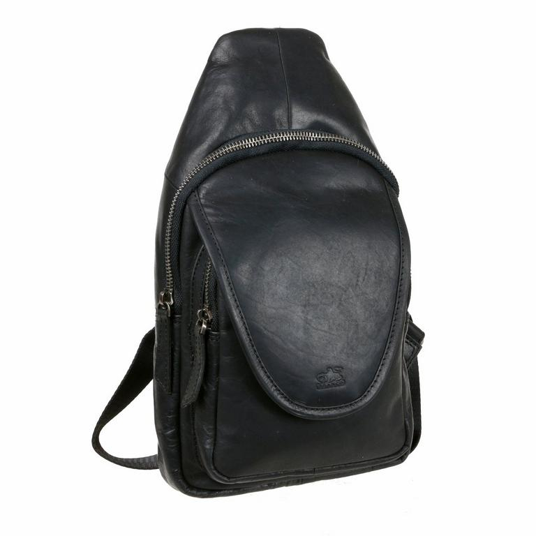 Štýlový batoh na rameno / crossbag kožená taška cez plece v čiernej farbe - s individuálne nastaviteľným ramenným popruhom - pri nosení pri tele vhodný na celkový obvod tela minimálne 100,0 cm až maximálne 160,0 cm..