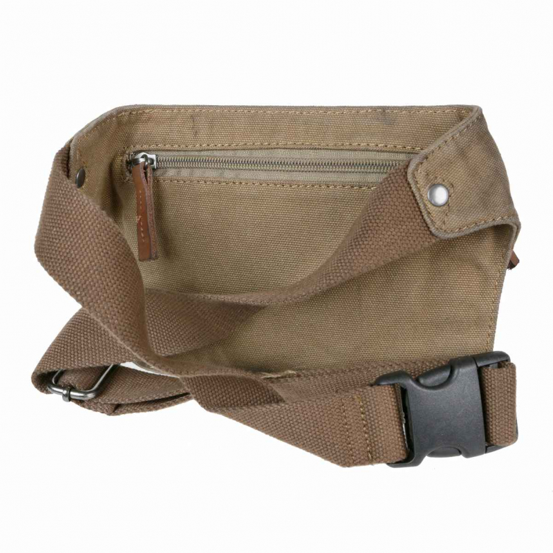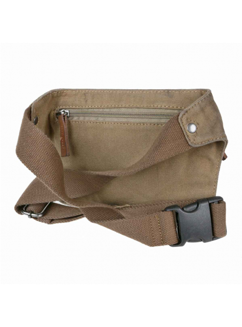 Štýlová crossbody ľadvinka/ príručná taška na pás v odtieni khaki. Nastaviteľný bedrový popruh - pre obvod od 95 do 125 cm. Vyrobená z plátna v spojení s kožou - ručne opracovaný povrch, čo dodáva taške individuálny charakter. Kvalitné precízne vypracovanie, pevné plátno, kožené bežce, popruh z canvasu. Zapínanie popruhu na masívnu plastovú zaklapovaciu pracku.