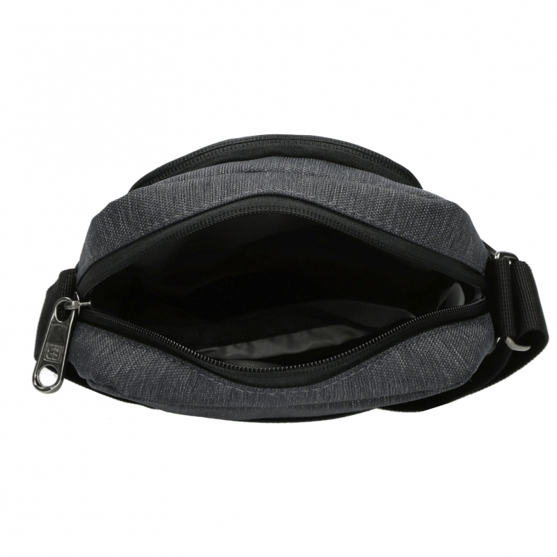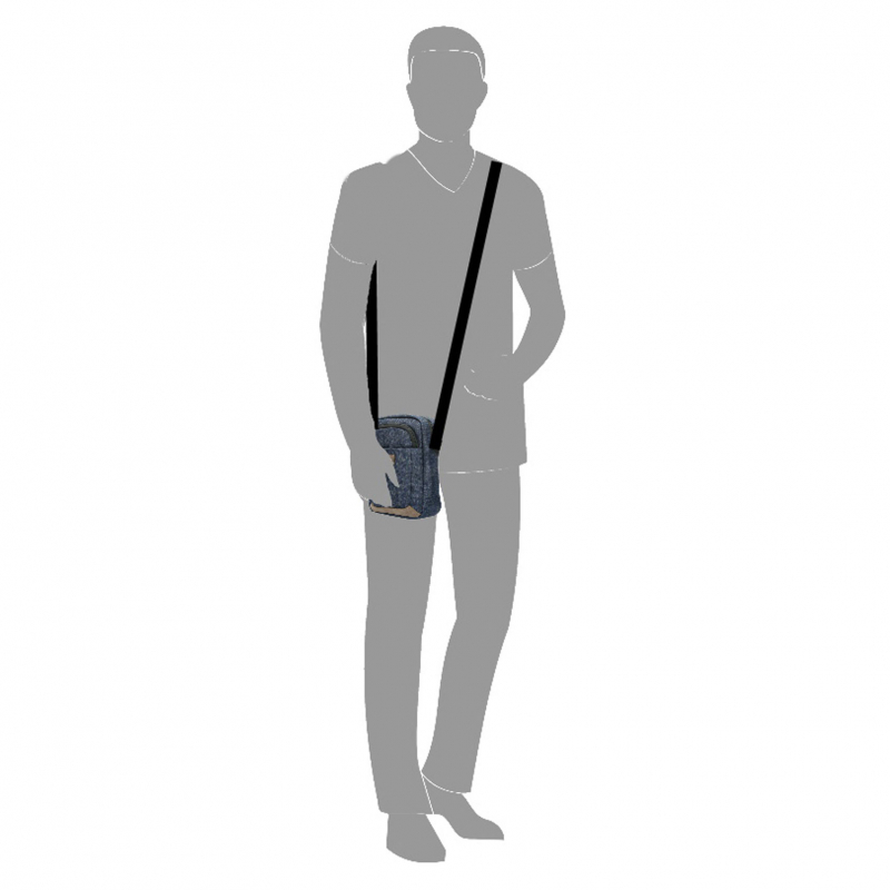 Vyrobená z moderných odolných materiálov v kombinácii nylon a polyester v 2 tónoch (melírovaný odtieň šedý), koženka na spodnej časti predného priečinku. Vnútorná a zadná stena tašky je masívnejšie vypolstrovaná, steny aj hrany držia svoj tvar. Dlhý popruh nastaviteľný do 155 cm umožnuje nosenie tašky v crossbody štýle. Kvalitné komponenty a vypracovanie, minimálna váha, priestranný a prispôsobivý úložný priestor.