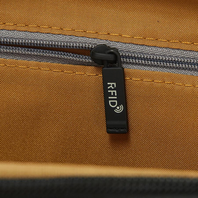 hlavná komora s hĺbkou 4-5 cm, vnútri priečinok na tablet, zadná vnútorná stena so špeciálnym priečinokom na zips s RFID ochranou kariet (po celom obvode)