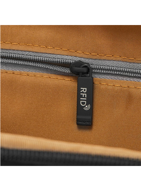 - hlavná komora s hĺbkou 4-5 cm, vnútri priečinok na tablet, zadná vnútorná stena so špeciálnym priečinokom na zips s RFID ochranou kariet (po celom obvode)