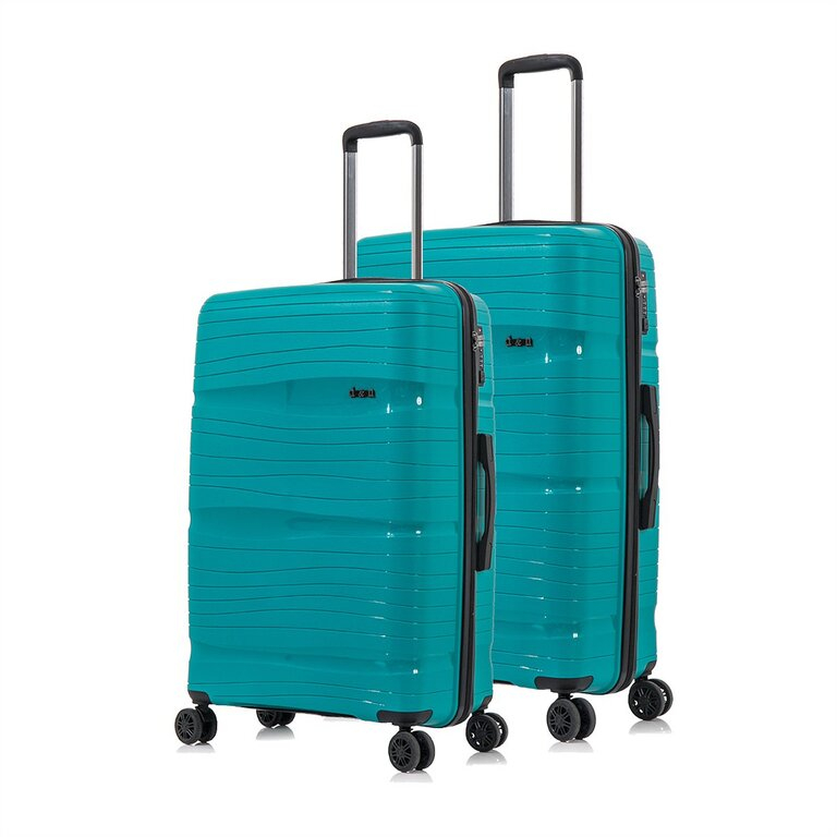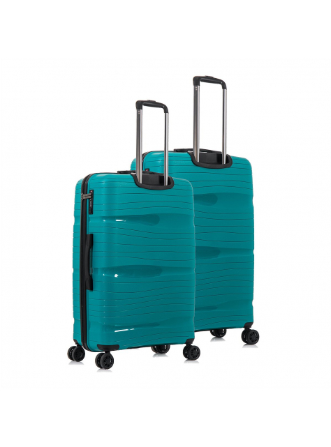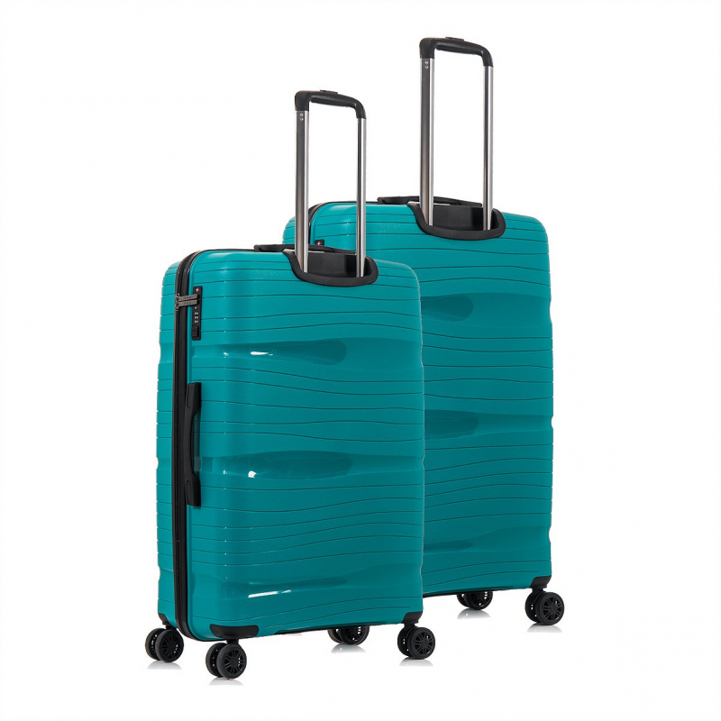 DVOJDIELNA SADA cestovných kufrov nemeckej značky D&N - veľký a stredný kufor s TSA zámkom, kufor s viacúrovňovou teleskopickou rukoväťou a silnou ochranou hrán je vyrobený z vysoko kvalitného odolného polypropylénu - z ľahkého a pružného materiálu (pružnejší a ľahší materiál ako ABS, vodeodolný, chemicky odolný, vysoko húževnatý - schopnosť materiálu ostať pri zohýbaní a nárazoch vcelku bez tvorby trhlín, pevný při vyšších teplotách, nekorozívny, elektroizolačný).