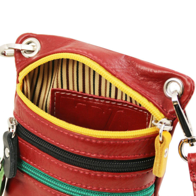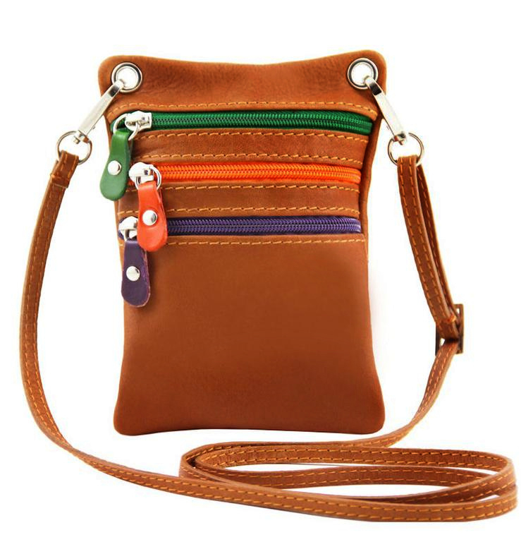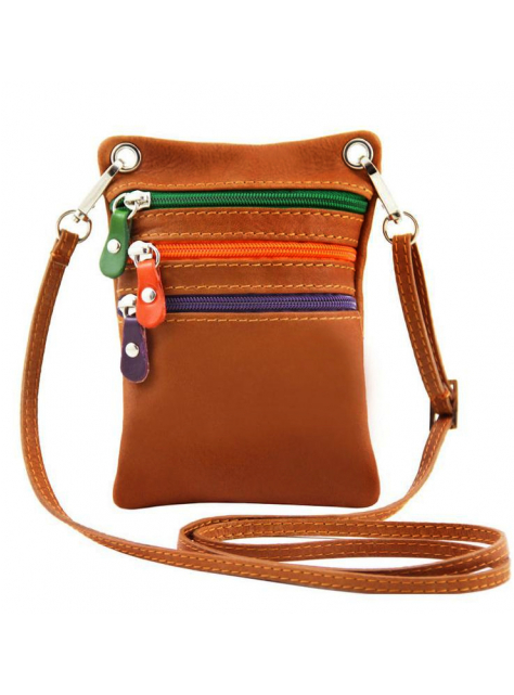Kožená mini taška crossbody na bežný deň značky TUSCANY LEATHER. Nosenie na rameno alebo cez plece odnímateľným popruhom (regulácia dĺžky do 120 cm nastaviteľné, š 1 cm). Uzatváranie priečinkov na zips. Predný a zadný priečinok po celej ploche taštičky, každý s vnútornou stenou z brúsenej kože.