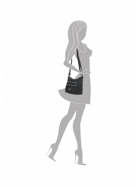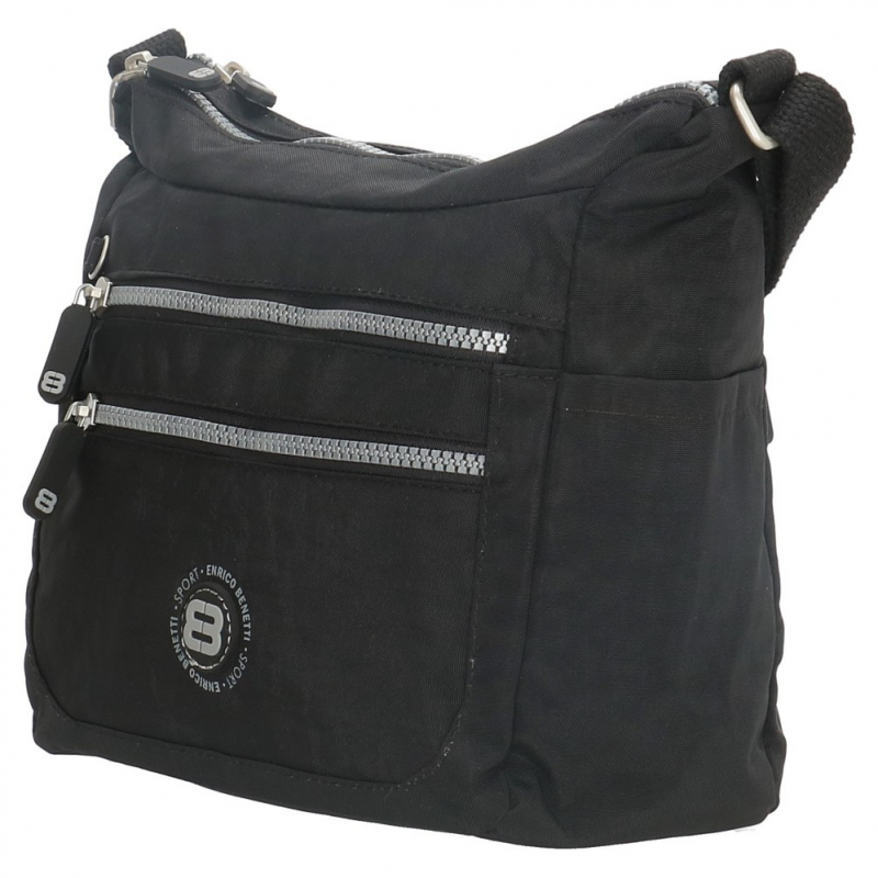 Trendy dámska crossbody kabelka holanskej značky ENRICO BENETTI - určená na bežné nosenie. Model s množstvom priečinkov vhodný pre formáty A5 a základné príručné veci. Ľahká kabelka z z jemne zvlneného nylonu v príjemne hladkom a zmäkčenom prevedení - kvalitný materiál a prevedenie. Celoobvodové polstrovanie. Model s dvoma komorami, každá so samostatným prístupom na zips. Nosenie na ramene alebo cez plece. Popruh z hustotkanej bavlny nastaviteľný od 80-150 cm.