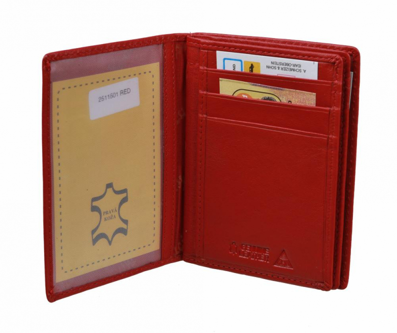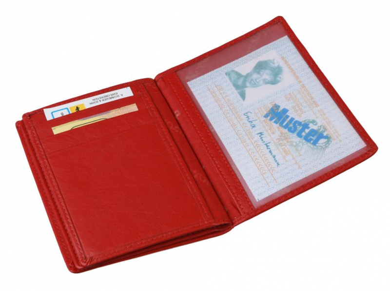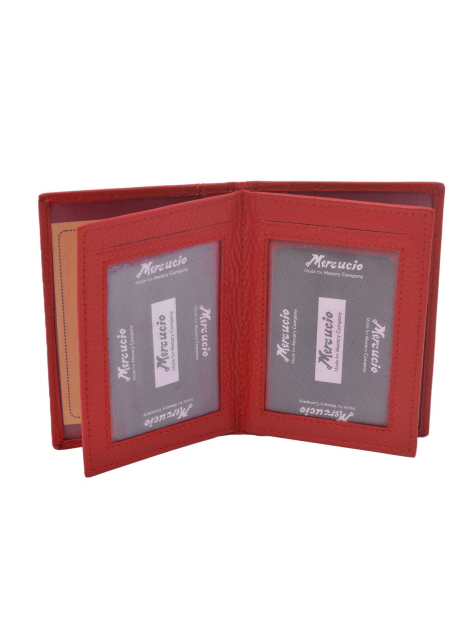 Dámska dokladovka pre karty a osobné doklady MERCUCIO z červenej nappa kože - kvalitná, mäkká, masívnejšia koža s hladkým povrchom, príjemná na dotyk. Hrany a steny spevnené.