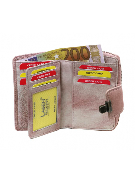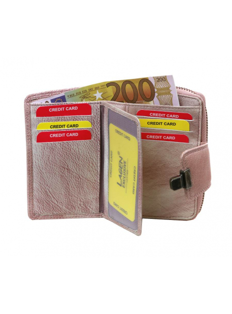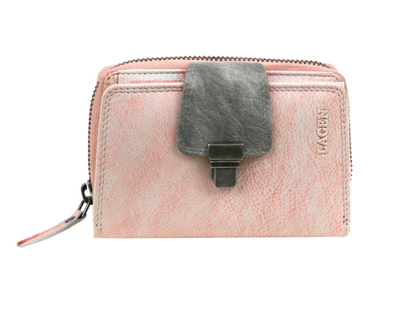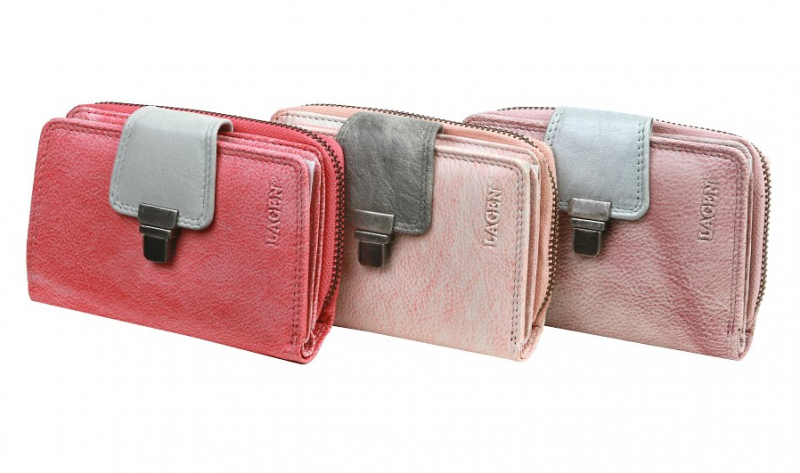 Dámska dvojdielna peňaženka LAGEN z kolekcie RAINBOW. Menší formát, uzatváranie na zips a kovovú pracku. Prevedenie z príjemnej kože v sviežej lososovej farbe. Náročné a precízne vypracovanie.