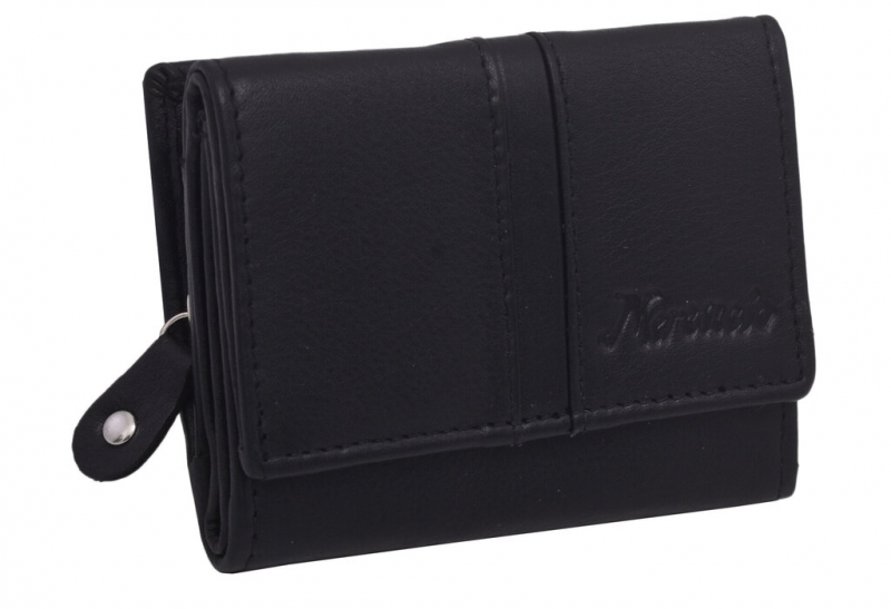 Dvojdielna malá dámska peňaženka MERCUCIO z kvalitnej pravej kože v zmäkčenej NAPPA úprave - farba kože v elegantnej čiernej farbe. Zapínanie na patent. Samostatný 2-priečinkový mincovník so zipsom, veľká priehradka pre bankovky aj najväčší typ. Formát peňaženky vyhovuje novému typu dokladov.