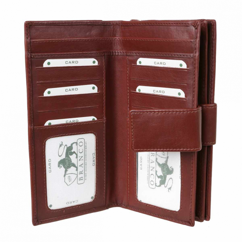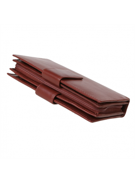 Kožená dámska SUPER peňaženka vo veľkom formáte - špeciálne určená pre dámy, ktoré majú veľa kariet, dokladov, bankoviek a mincí. Vyrobená z hebkej kože v peknej hnedej karamelovej farbe. Obsahuje super veľký mincovník so zipsom, priečinky pre 22 kariet, dve samostatné časti na doklady a karty so zapínaním na pracky. Pri väčšom obsahu peňaženky poslúžia 2 nastaviteľné polohy zapínania patentov.