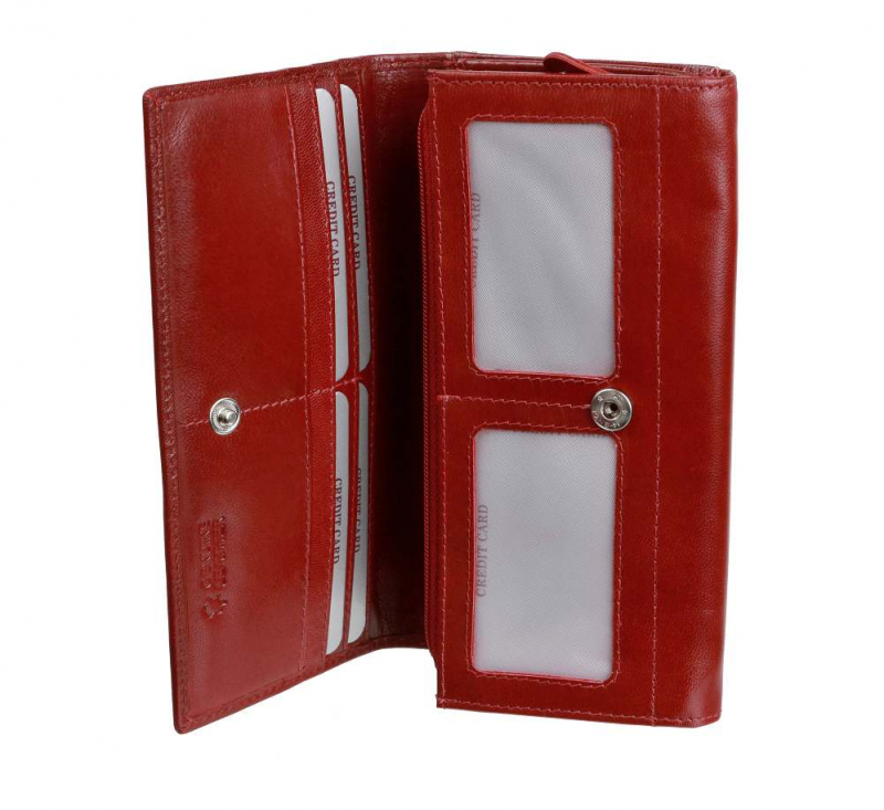 Elegantné prevedenie peňaženky v červenej koži, precízne spracovanie (šitie, zipsy, podšívka).