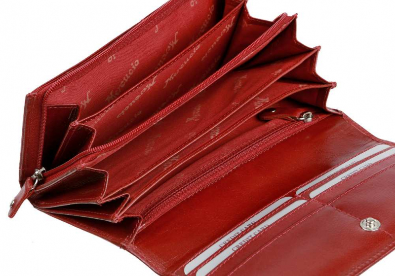 Dámska kožená listová peňaženka MERCUCIO. Peňaženka z hladkej kože bez prešívania so zapínaním na kovový patent, mincovník na zips.