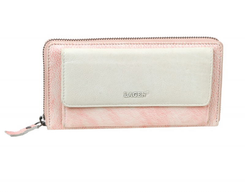 Dámska kožená peňaženka LAGEN z kolekcie RAINBOW. Veľký formát, uzatváranie na zips. Peňaženka s predným priečinkom vhodným pre smarfón do rozmerov 14,5 x 6,5 cm.