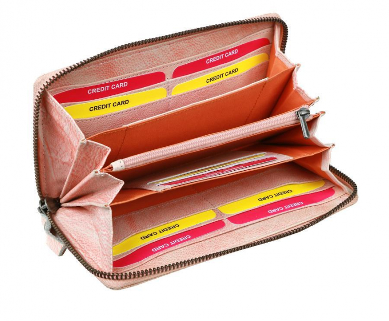 - 1 hlavný zipsový priečinok- 1 mincovník na zips po celej dĺžke, 4 priehradky na bankovky, 11 priehradok na bankové karty a doklady, 2 otvorené priečinky pod kartami,