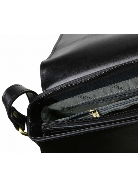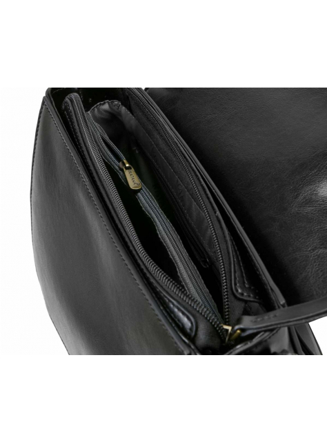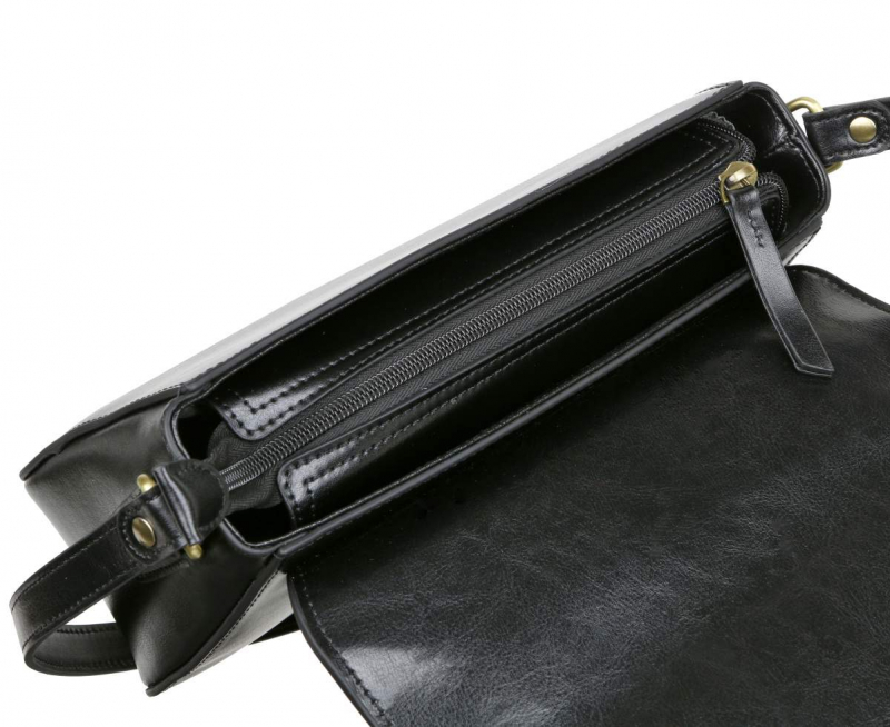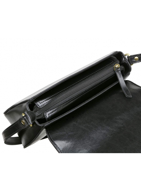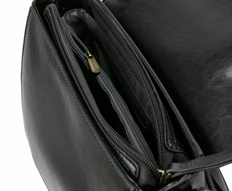 Jemná a štýlová kabelka oblých tvarov s francúzskym pôvabom z kolekcie značky KATANA. Z kvalitnej kože v luxusnej povrchovej úprave, v mierne lesklom prevedení elegantnej čiernej farby. Luxusný trendový model, vysokoelegantný dizajn, pevný a stabilný tvar. Dvojkomorové vnútro.