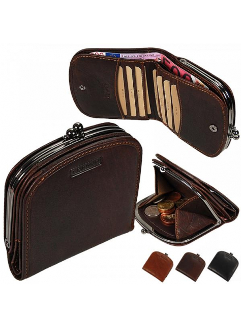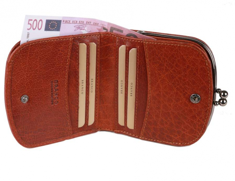 Kožená peňaženka zn. BRANCO v tvare podkovy s kovovým zapínaním. Pravá byvolia koža, kvalitne spracovaná s luxusnou úpravou povrchu, vnútorný priestor mincovníka vystlaný koženkou. Peňaženka stredného typu vhodná pre nový typ dokladov.