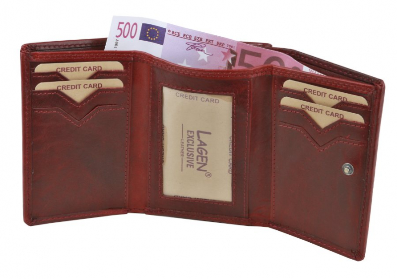Dámska kožená peňaženka LAGEN v praktickom formáte do ruky. Dvojdielny typ so zapínaním na kovové patenty.