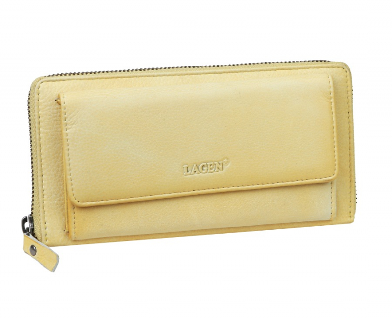Dámska kožená peňaženka LAGEN z kolekcie RAINBOW. Veľký formát, uzatváranie na zips. Peňaženka s predným priečinkom vhodným pre smarfón do rozmerov 14,5 x 6,5 cm.