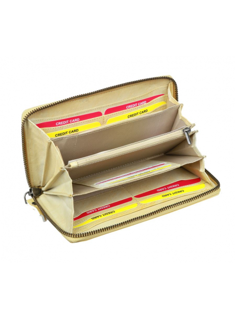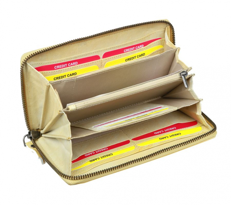 - 1 hlavný zipsový priečinok- 1 mincovník na zips po celej dĺžke, 4 priehradky na bankovky, 11 priehradok na bankové karty a doklady, 2 otvorené priečinky pod kartami,