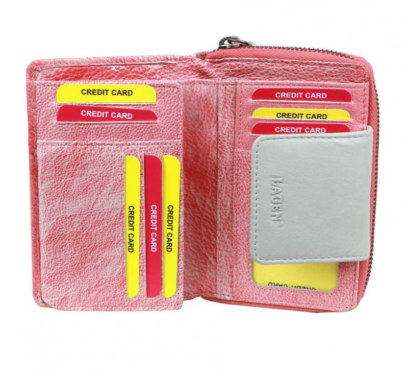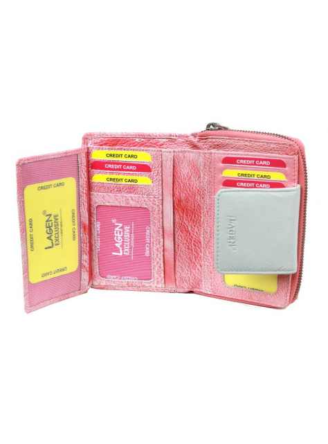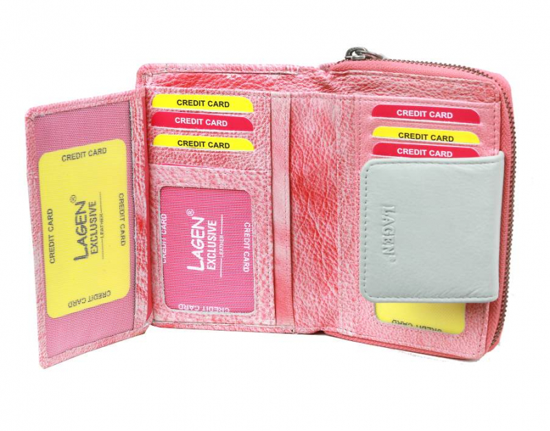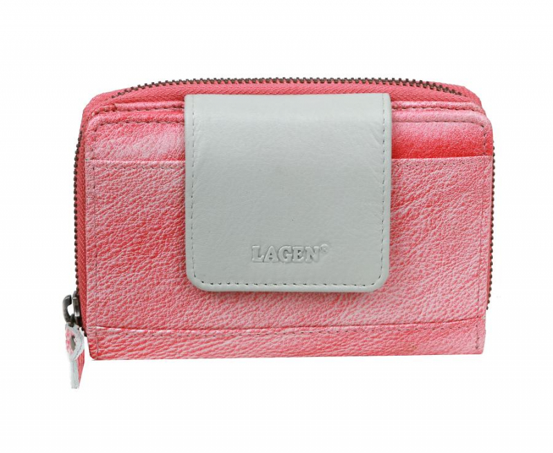 Dámska dvojdielna peňaženka LAGEN z kolekcie RAINBOW. Väčší formát, uzatváranie na zips a dvojitý kovový patent. Prevedenie z príjemnej kože v romantickej ružovej farbe.