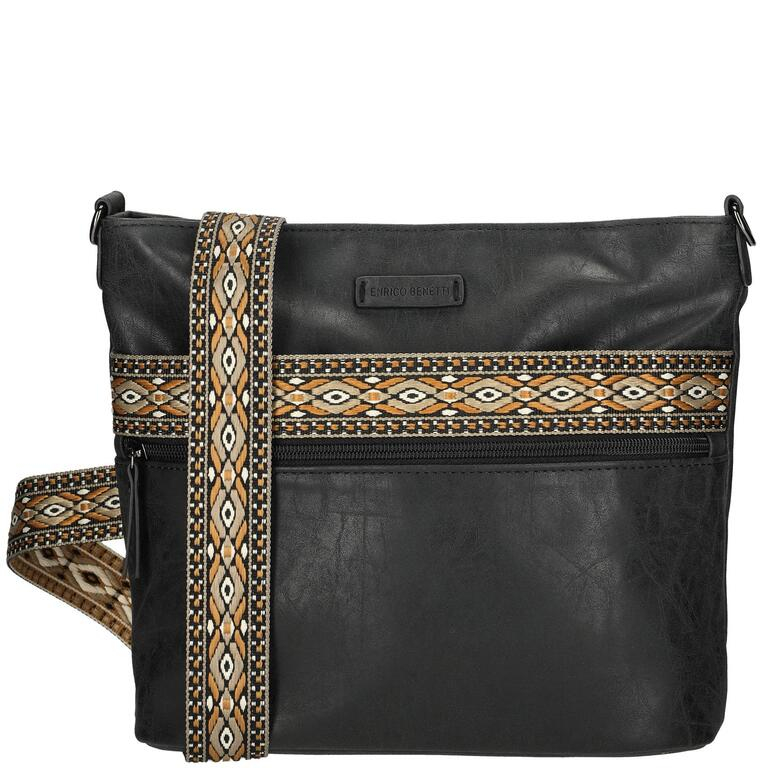 Dámska kabela - kapsa ENRICO BENETTI v indickom štýle v čiernej s kontrastnými prvkami. Priestranný a prispôsobiteľný formát.