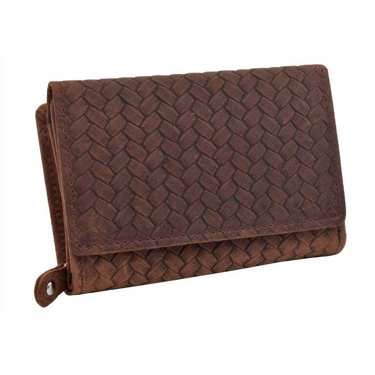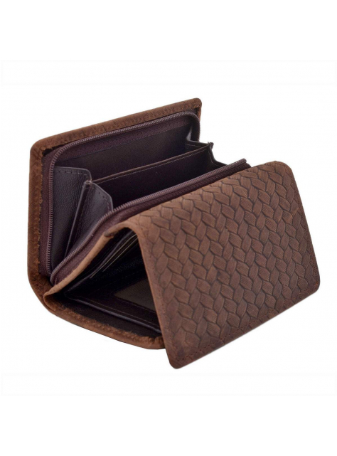 Dvojdielna stredne veľká dámska peňaženka MERCUCIO - elegantný model v spevnenom formáte s razeným prepletaným vzorom z hladko brúsenej kože, vnútro z hladkou kožou.