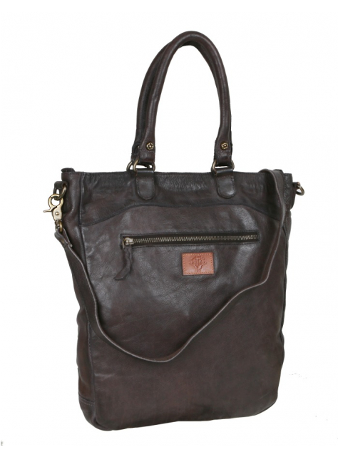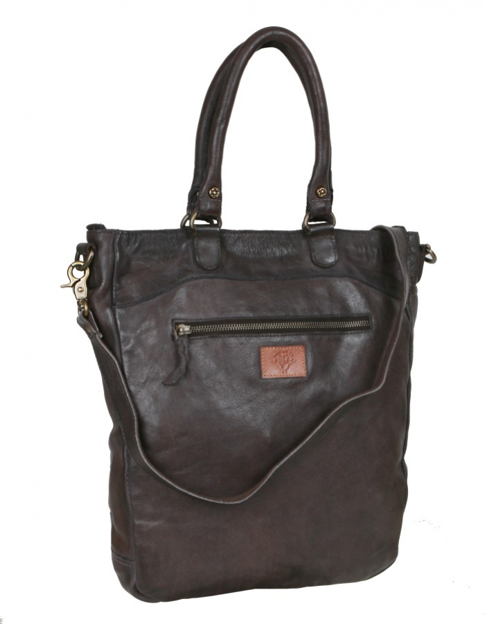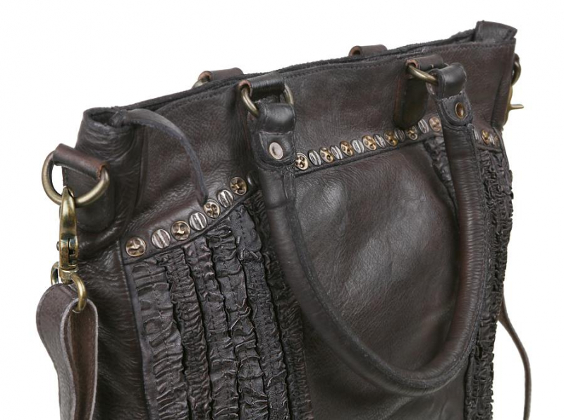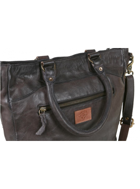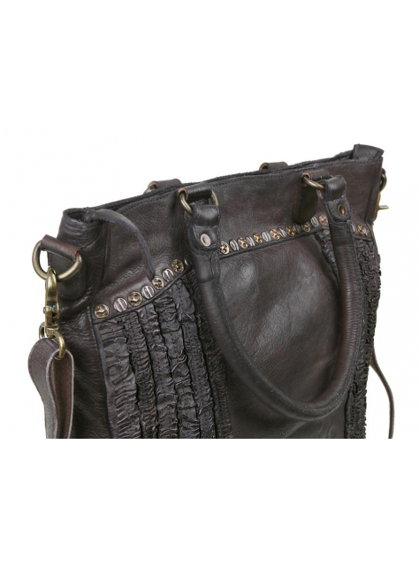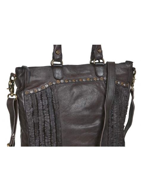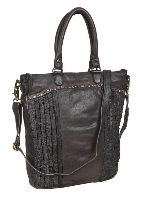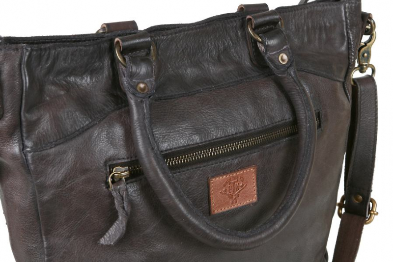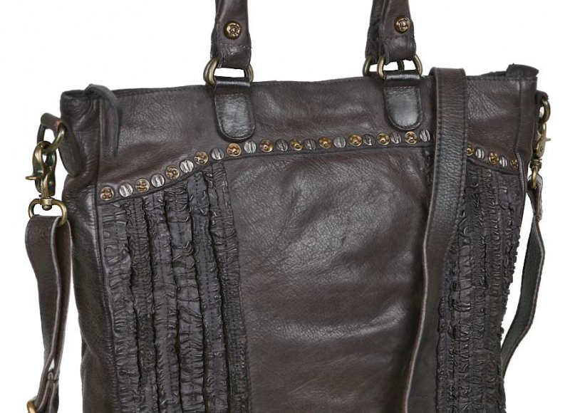 Na prednej časti kovové a kožené ozdobné aplikácie. Koža s voskovanou úpravou, odľahčené prevedenie, praktická a pohodlná na nosenie. Pevné rúčky dĺžky 40 cm, ramienko odnímateľné, nastaviteľná dĺžka do 150 cm.