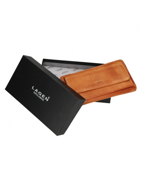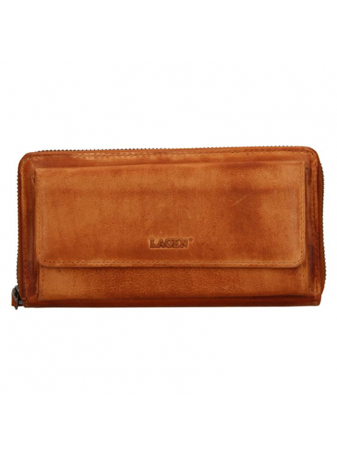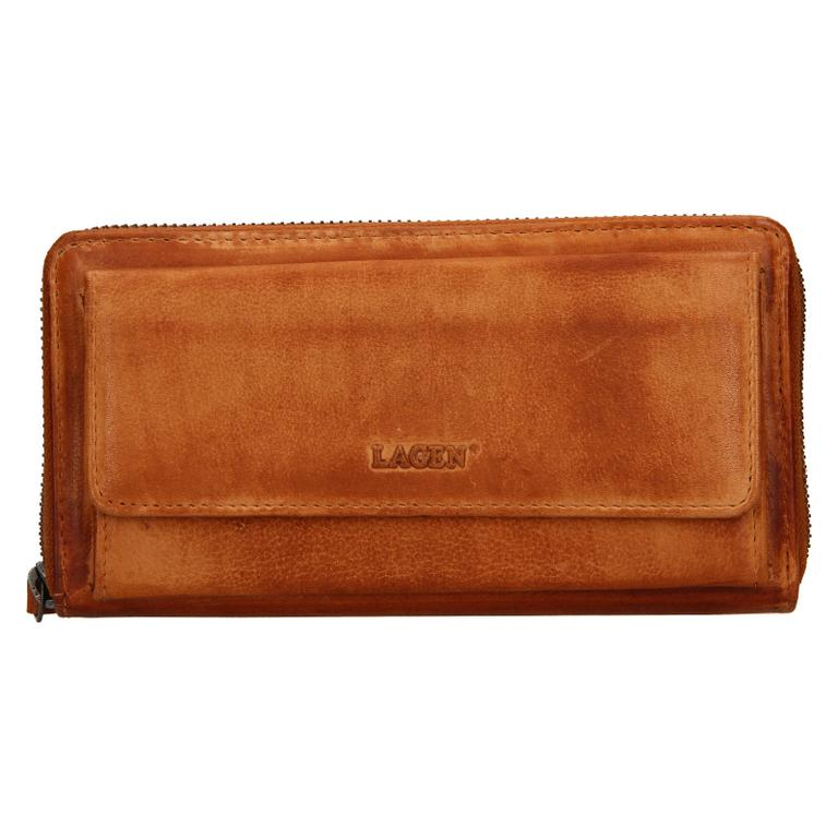 Dámska kožená peňaženka LAGEN - veľký formát, uzatváranie na zips. Peňaženka s predným priečinkom uzatváraným na magnet - vhodným pre smarfón do rozmerov 16 x 7 cm.
