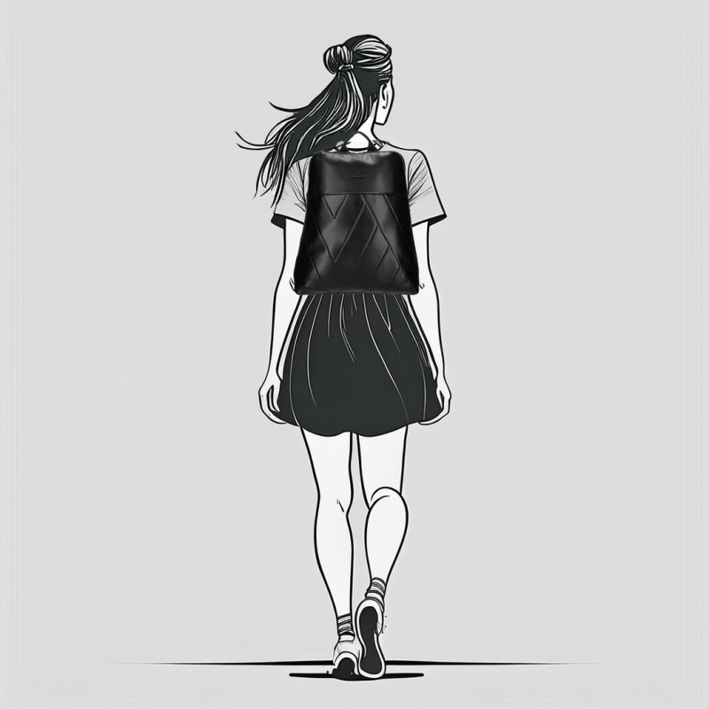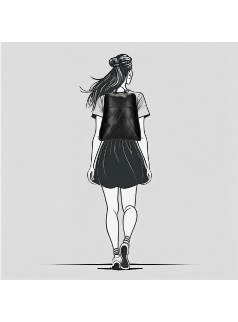 Batoh má elegantný tvar, pôsobí štíhlo. V prednej časti je hlboká priehradka na magnet, vzadu je zipsová priehradka.
