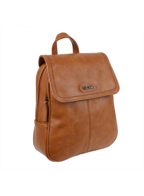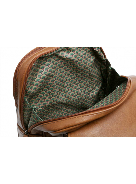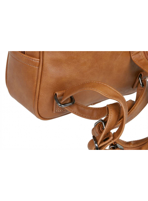 Batoh v sýtom koňakovom odtieni z kvalitnej príjemne zmäkčenej koženky verne imitujúcej pravú kožu, materiál praktický na údržbu, ľahký na nosenie. Kvalitné vypracovanie.