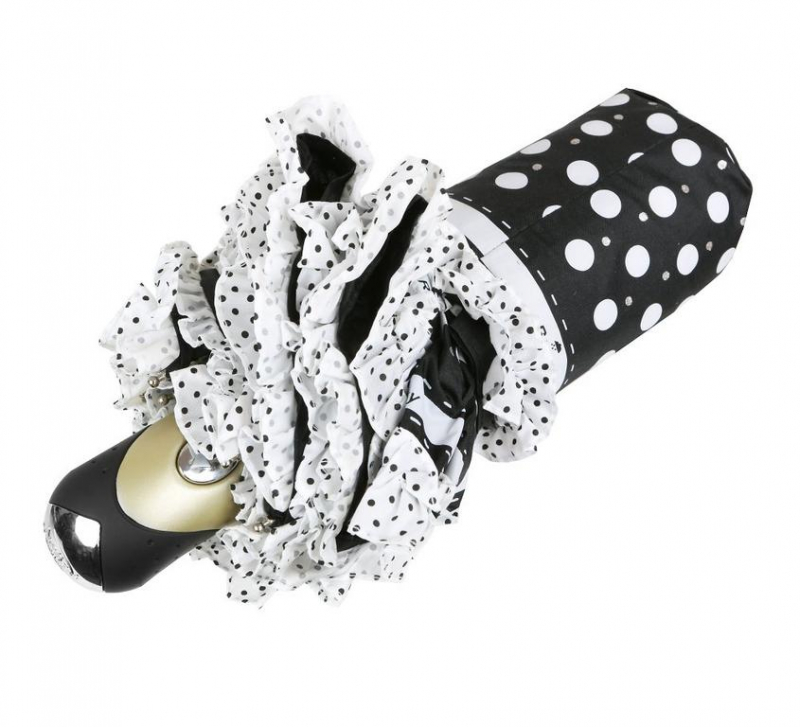 Dámsky čierno-biely bodkovaný dáždnik, automat 25 cm