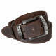 Dámsky džínsový opasok značky MERCUCIO - remeň z masívnej extra poddajnej kože v hnedej makadámovej úprave, okraje s prešívaním. Skracovateľný na požadovanú dĺžku. Atraktívna masívnejšia pracka na strmeň a kovové putko - prevedenie šedostrieborné satinované s gravírovaním. Vhodný do džínsov aj nohavíc.