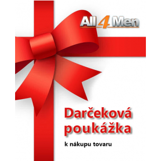 - Darčekovú poukážku je možné uplatniť len jednorazovo a pri jednom nákupe v internetovom obchode www.all4men.sk.