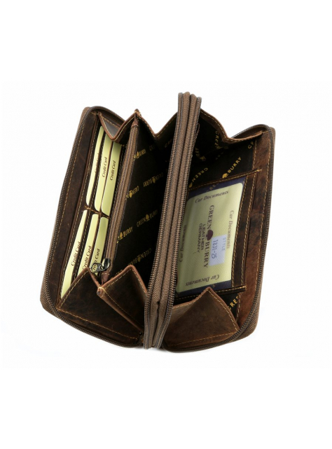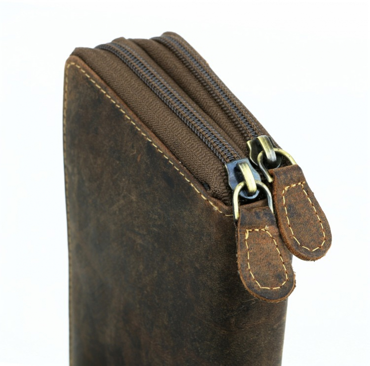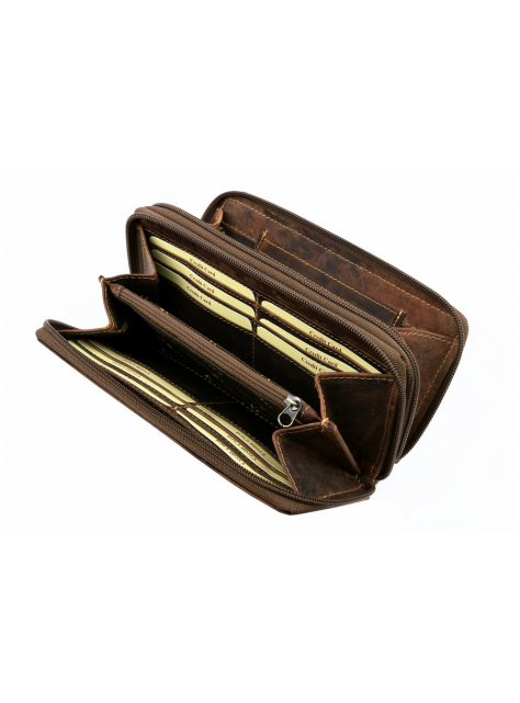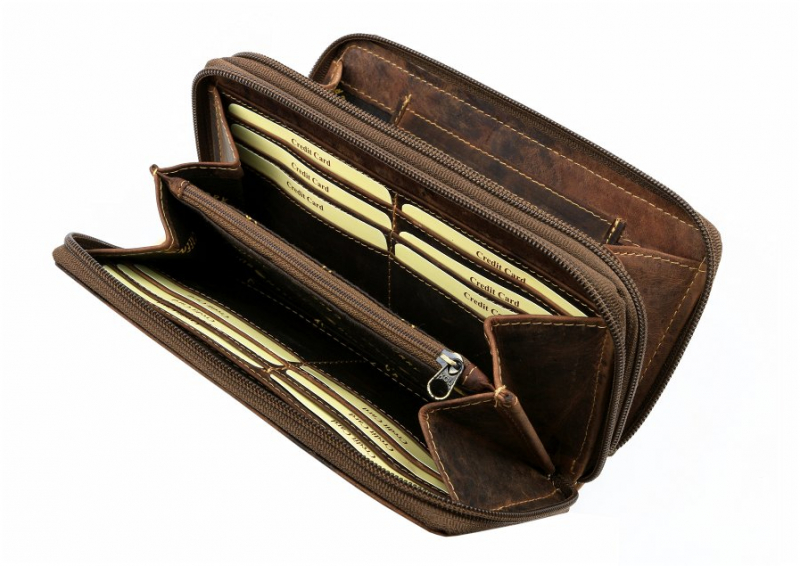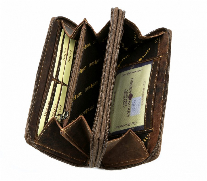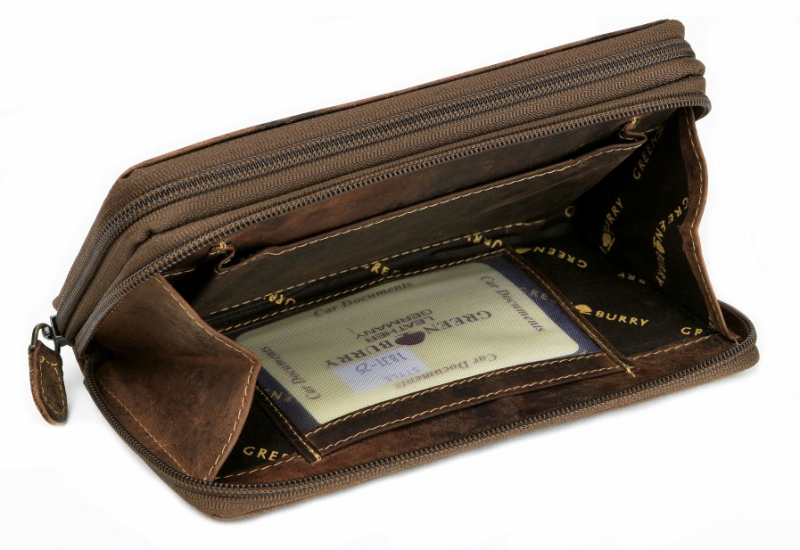 Obsahuje 2 samostatné časti so zatváraním na zips. Vhodná pre väčšie množstvo dokladov, kariet, bankoviek a mince. Vyrobená z kvalitnej masívnej kože v zamatovo-hladkej brúsenej úprave.