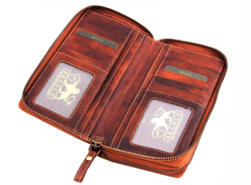 Kožená listová BRANCO vo formáte peračníka s dvoma samostatnými oddeleniami uzatváranými zipsom. Peňaženka disponuje dostatkom priestoru pre karty a doklady.