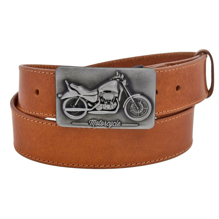 Kožený opasok zn. MERCUCIO s exkluzívnou výraznou prackou MOTOCYCLE.