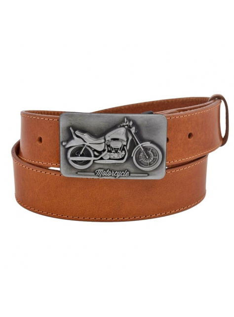 Džínsový opasok s prackou MOTOCYCLE koňakový
