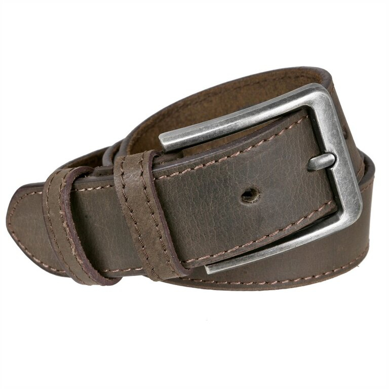 Kožený opasok zn. MERCUCIO s remeňom z brúsenej kože so zmatneným hladkým povrchom a prešívanými okrajmi.