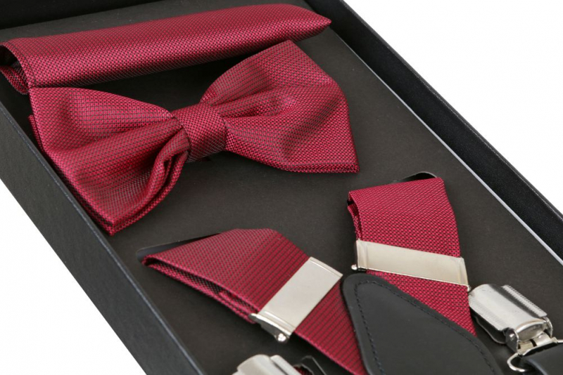 Elegantná 3-dielna súprava - Traky, motýlik, vreckovka