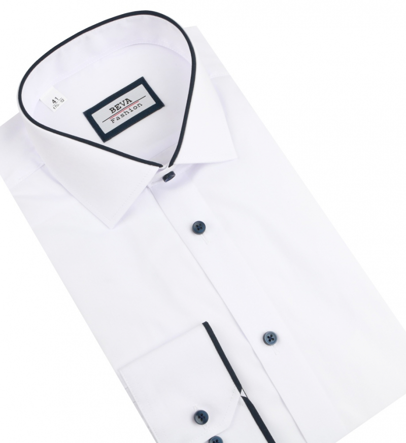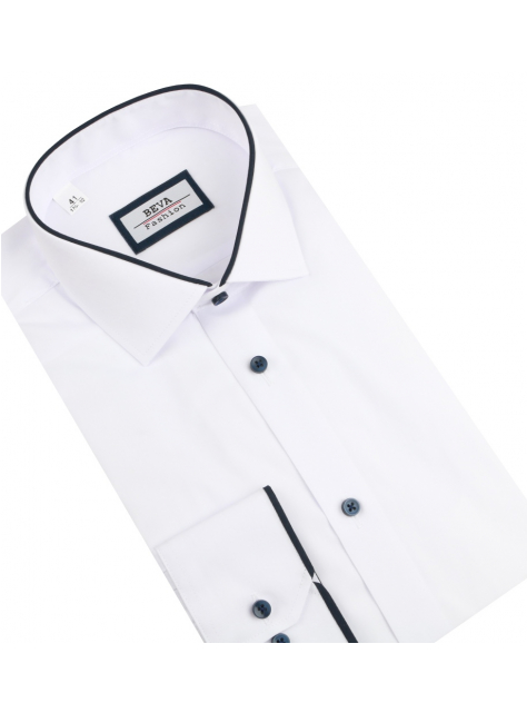 Elegantná spoločenská košeľa BEVA SLIM, biela-čierne lemovanie