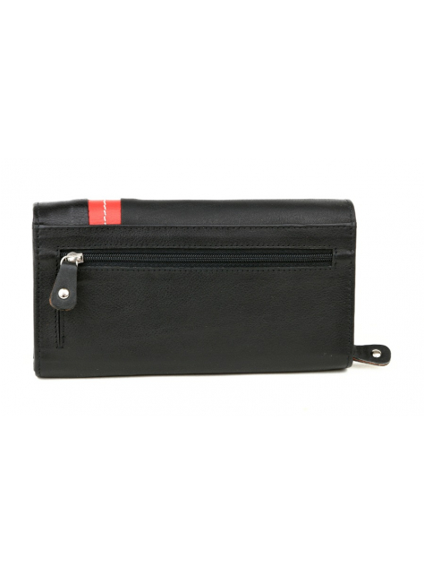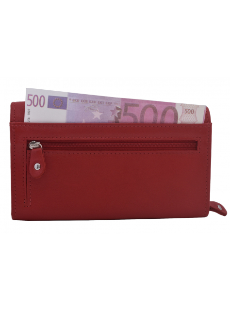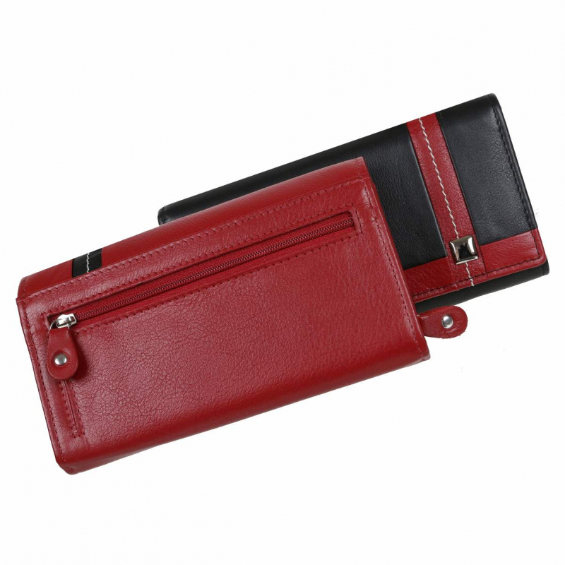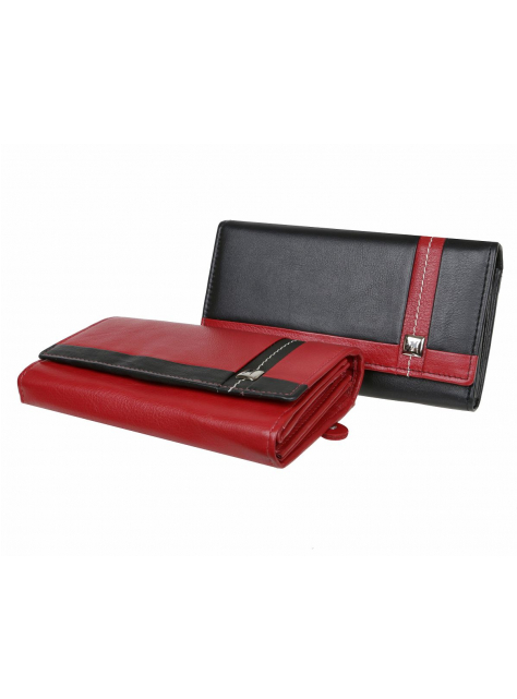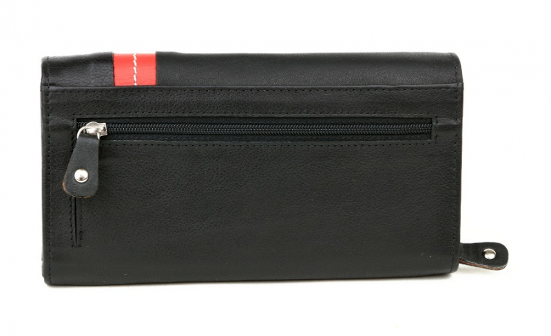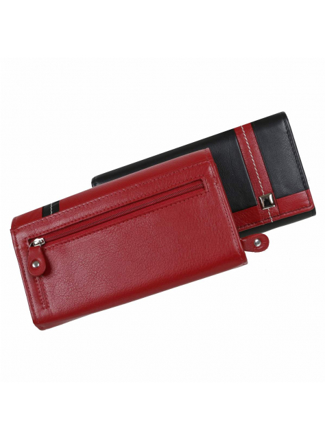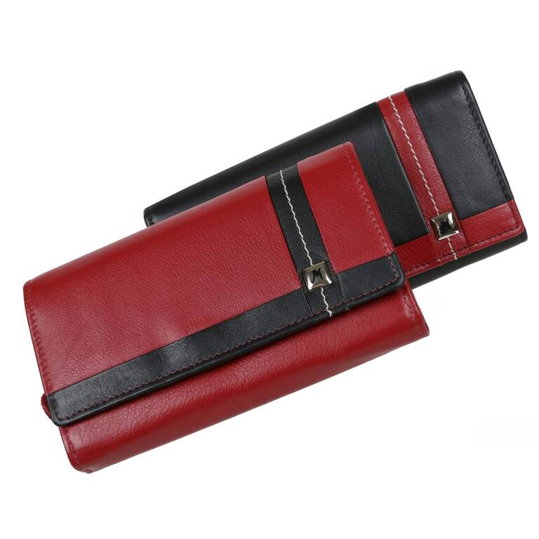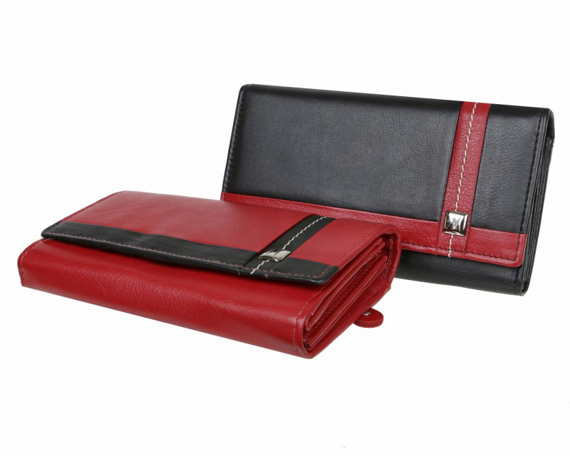 Dámska peňaženka s veľkými vnútornými priehradkami z príjemne mäkkej kože. Lícna strana oživená prešitými pásmi. Ploché priehradky vyhovujú aj pre starší typ dokladov.