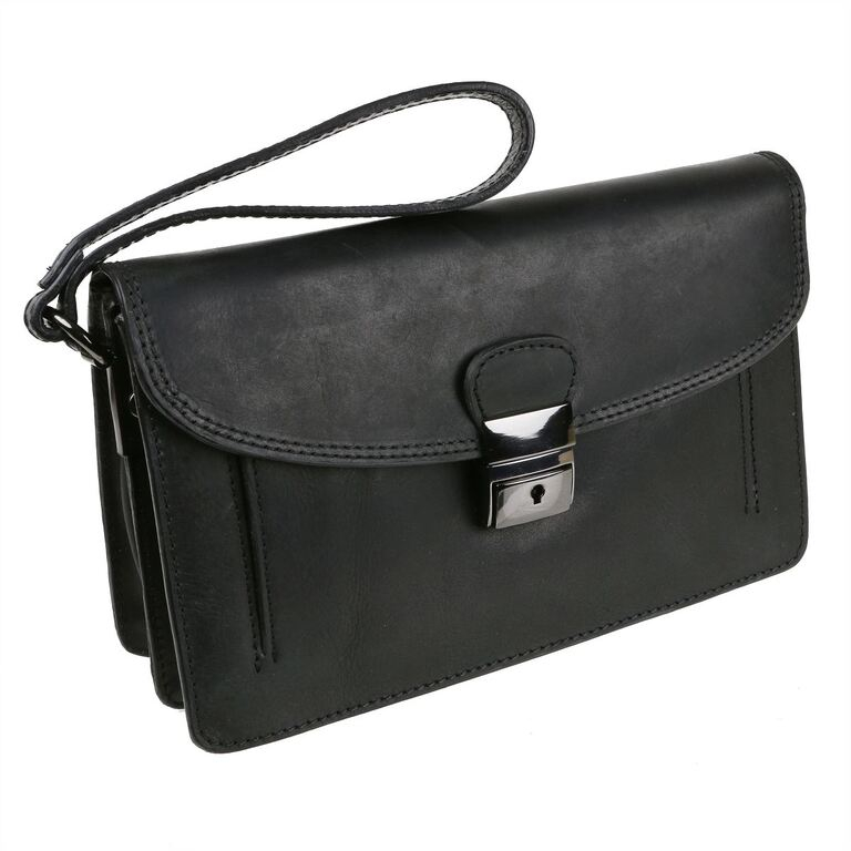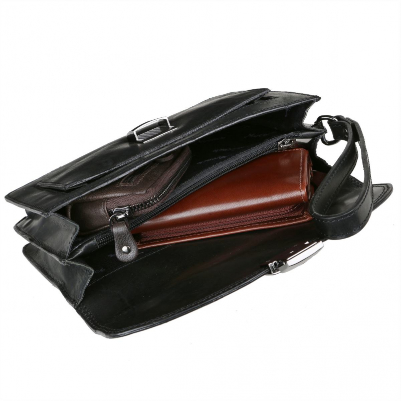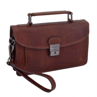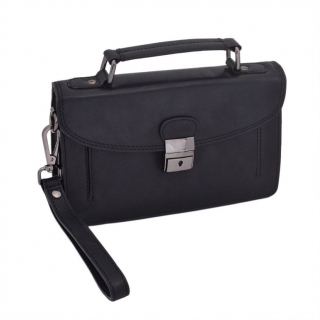 Elegantná etue na doklady - pánska kožená taška väčšieho typu s viacerými vnútornými priehradkami. Masívna koža v hladkej povrchovej úprave. Nosenie za bočnú rúčku - pevne uchytenú. Zapínanie na kovovú zliatinovú pracku (s uzamykaním).