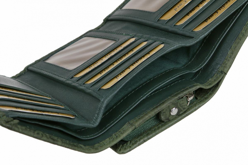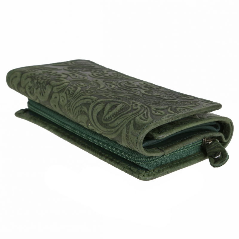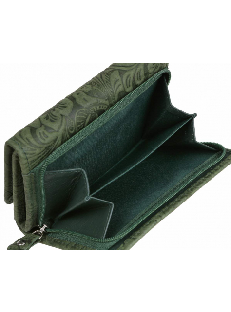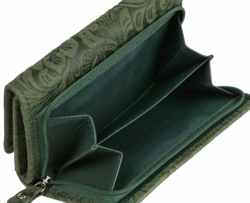Exkluzívna dámska peňaženka MERCUCIO s kvetinovým motívom v príjemnej zelenej farbe.