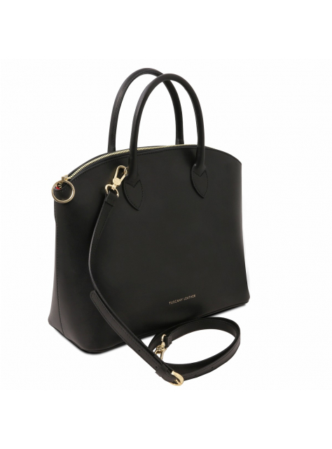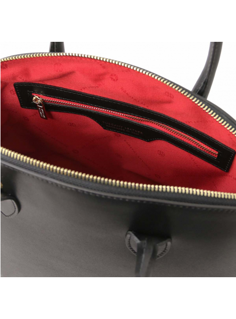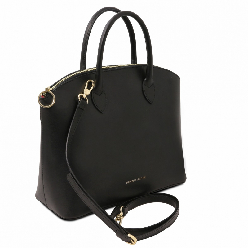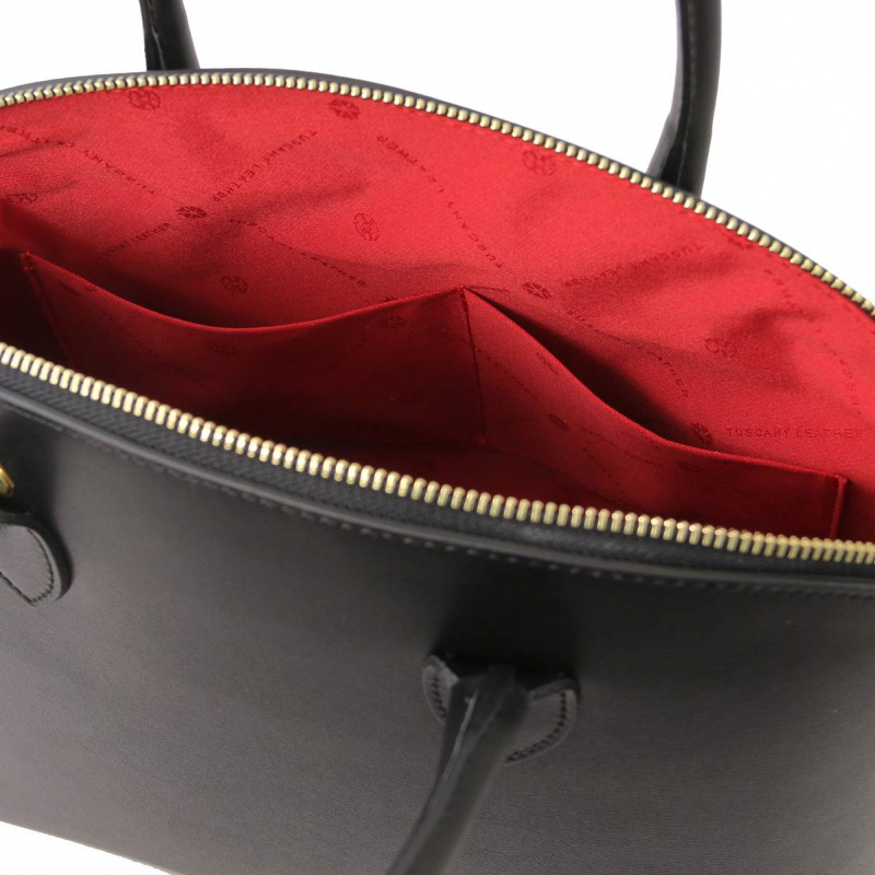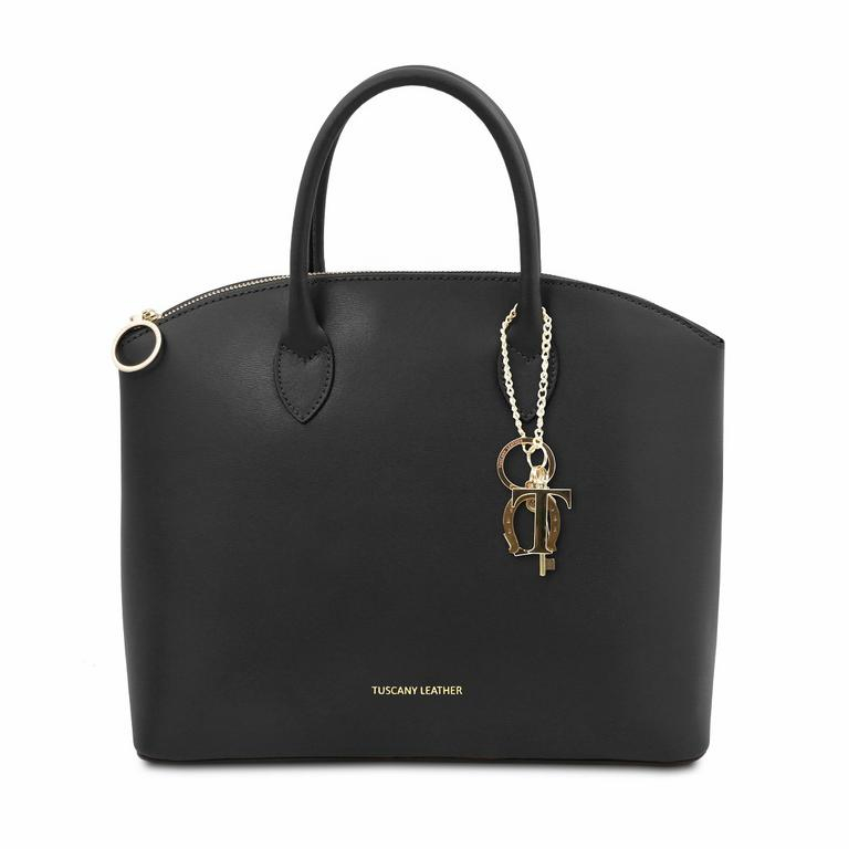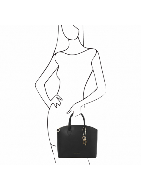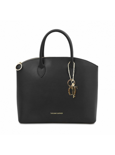 Kožená kabelka KEYLUCK od TUSCANY LEATHER, moderný a obľúbený tvar. Luxusný čistý dizajn, priestranné členenie interiéru. Kabelka veľkosťou vyhovuje dokumentom formátu A4.