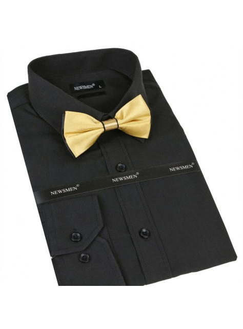 Pánska košeľa NEWSMEN s dlhým rukávom v klasickom voľnom strihu. Hladká tkanina čiernej farby.