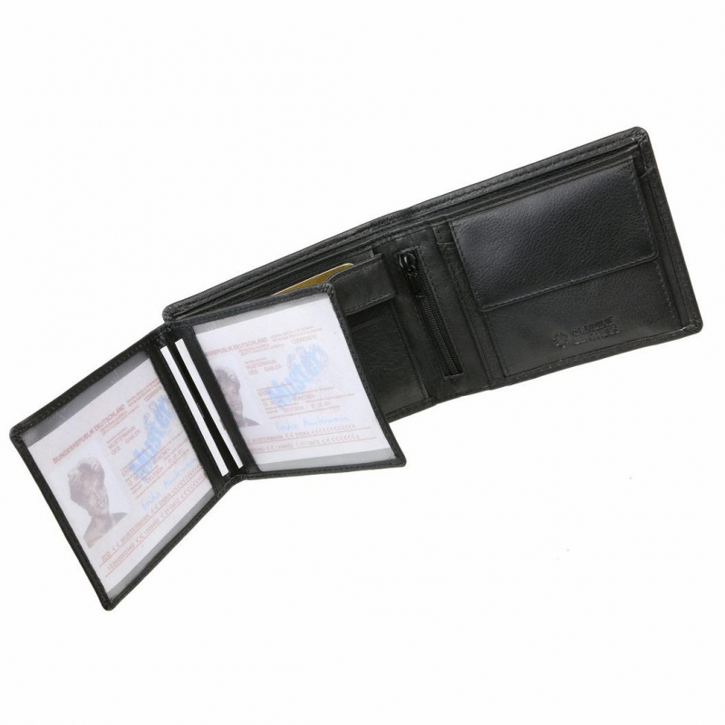 Pánska peňaženka z elegantnej hladkej kože čiernej farby MERCUCIO. Peňaženka na šírku bez zapínania, praktický formát pre každého muža.