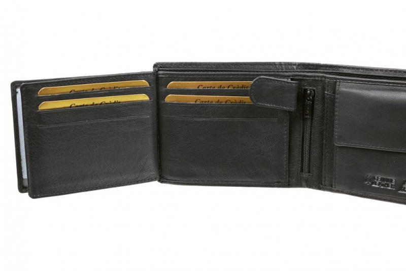 Priečinky na doklady a karty sú umiestnené v ľavo zopnuté patentom, vyklápanie do ľava. Peňaženka vhodná aj pre starší typ osobných dokladov.