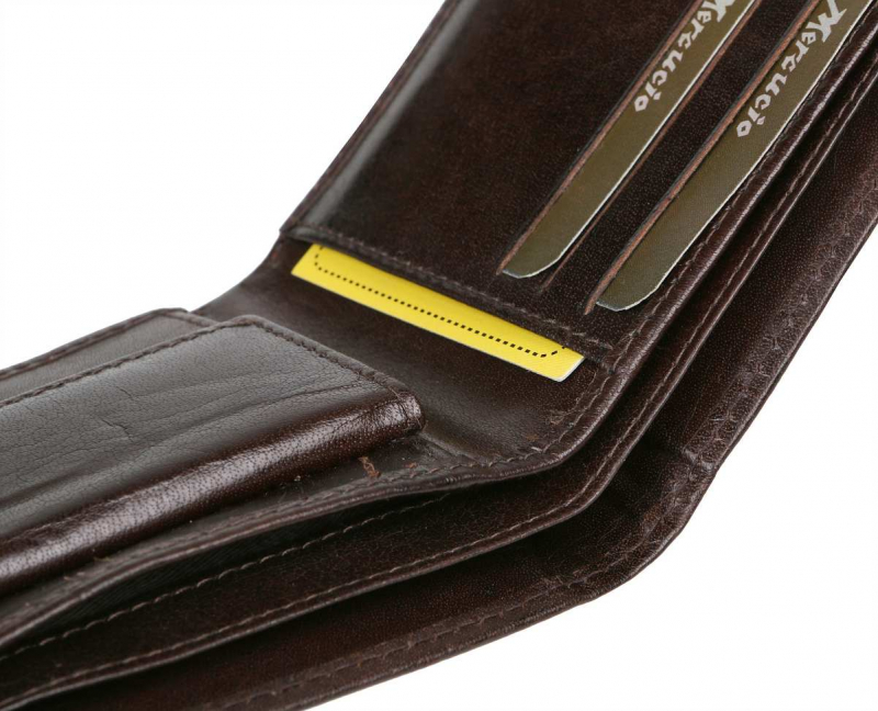 Formát vhodný pre Vám prioritné karty. Priestor pre bankovky vyhovuje aj 500 € bankovkám. Kožená stena v mincovníku.