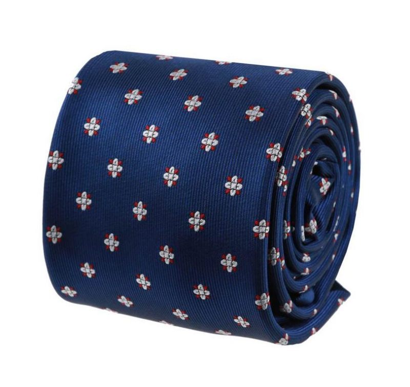 FARBA: tmavomodrá, drobné tkané kvety bielej farby s červenými lístkami