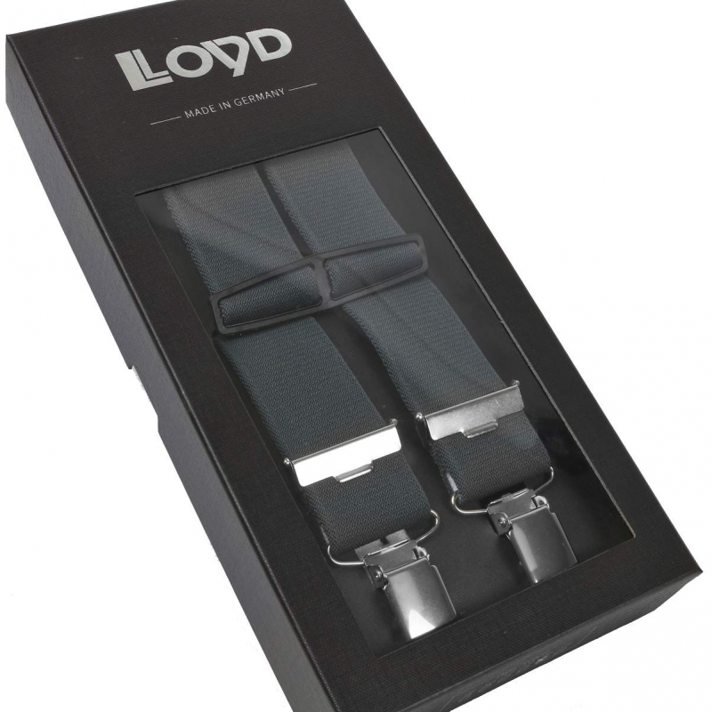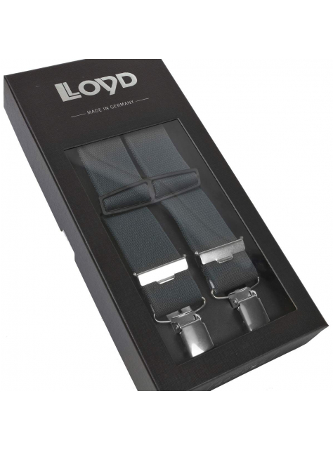 Exkluzívne pánske traky zn. LLOYD s klipsami. Luxusný model v antracitovej farbe, plasticky tkaný vzor s miernym zamatovým odleskom. Vhodný k obleku. Kvalitný materiál a vypracovanie.