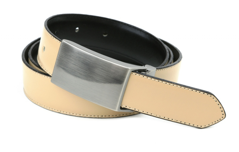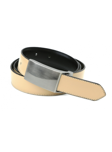 Pánsky elegantný kožený opasok - 2 v 1 - čierny a béžový. Zapínanie na guličku do dierok na remeni.