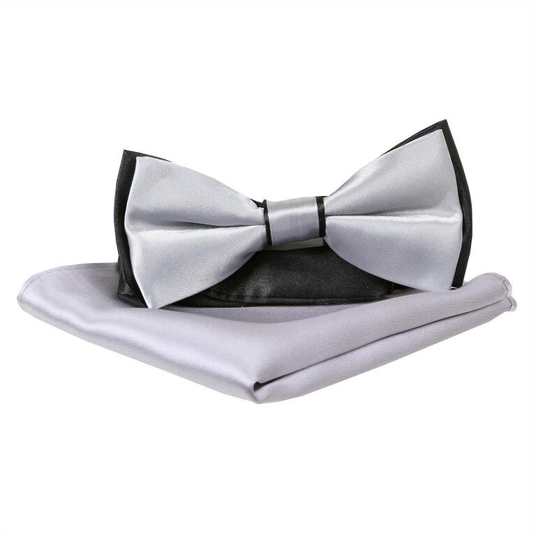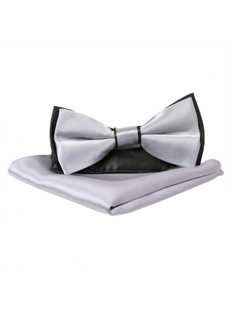 Elegantný šedý motýlik a vreckovka do saka ORSI